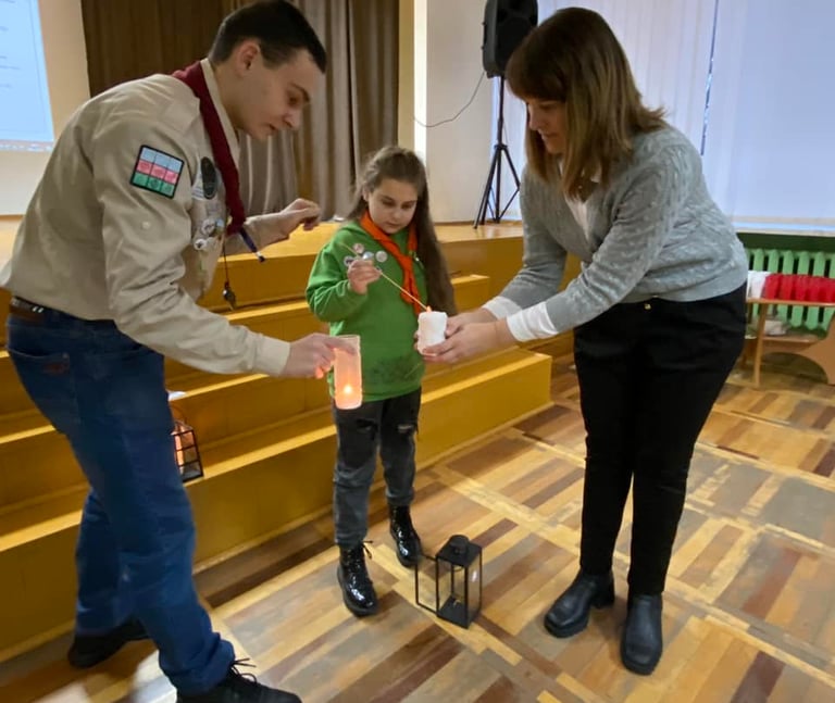 Nuoširdus AČIŪ jauniesiems aktoriams, dainininkams, šokėjoms, lietuvių kalbos mokytojai Jūratei Rugienienei, šokių mokytojai Laimai Danauskaitei, muzikos mokytojui Artūrui Grinevičiui, pyragų kepėjams ir visiems besidalinusiems gerumu.Tegul Betliejaus ugnies šiluma, kurią šiandien atnešė jaunieji skautai, gyvena visų mūsų širdyse.