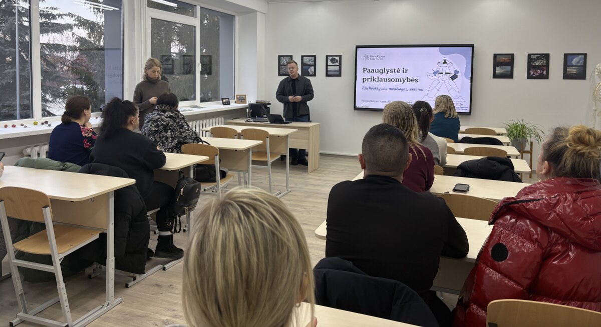 Vasario 26 d. progimnazijoje vyko mokymai tėvams ,,Paauglystė ir priklausomybės”, kuriuos organizavo Marijampolės savivaldybės visuomenės sveikatos biuras.