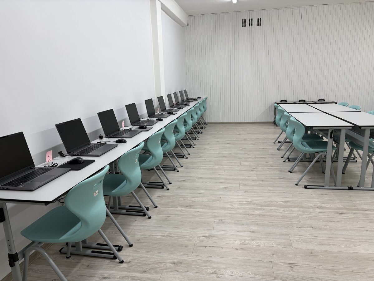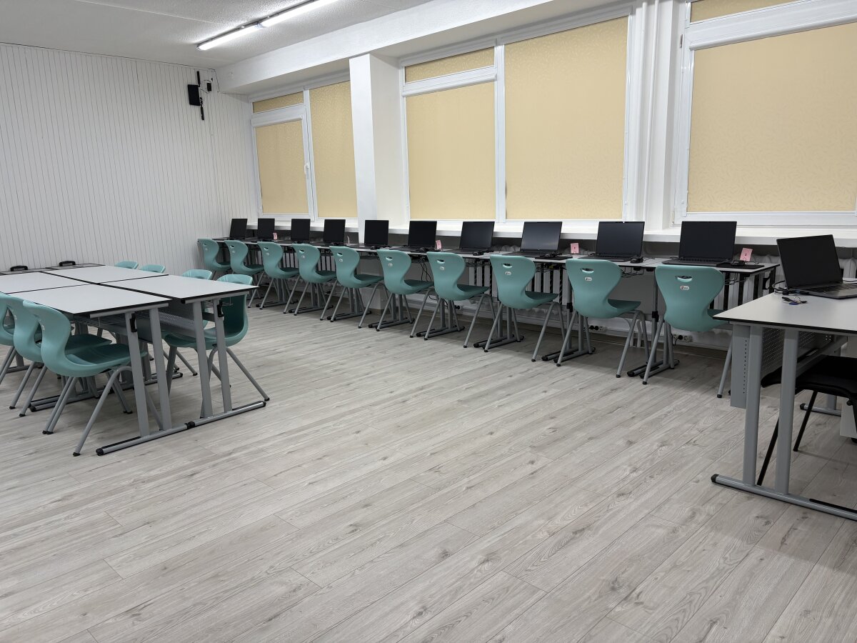 Progimnazijoje įrengėme naują informatikos kabinetą.