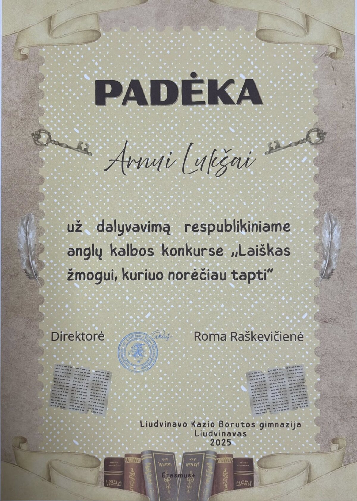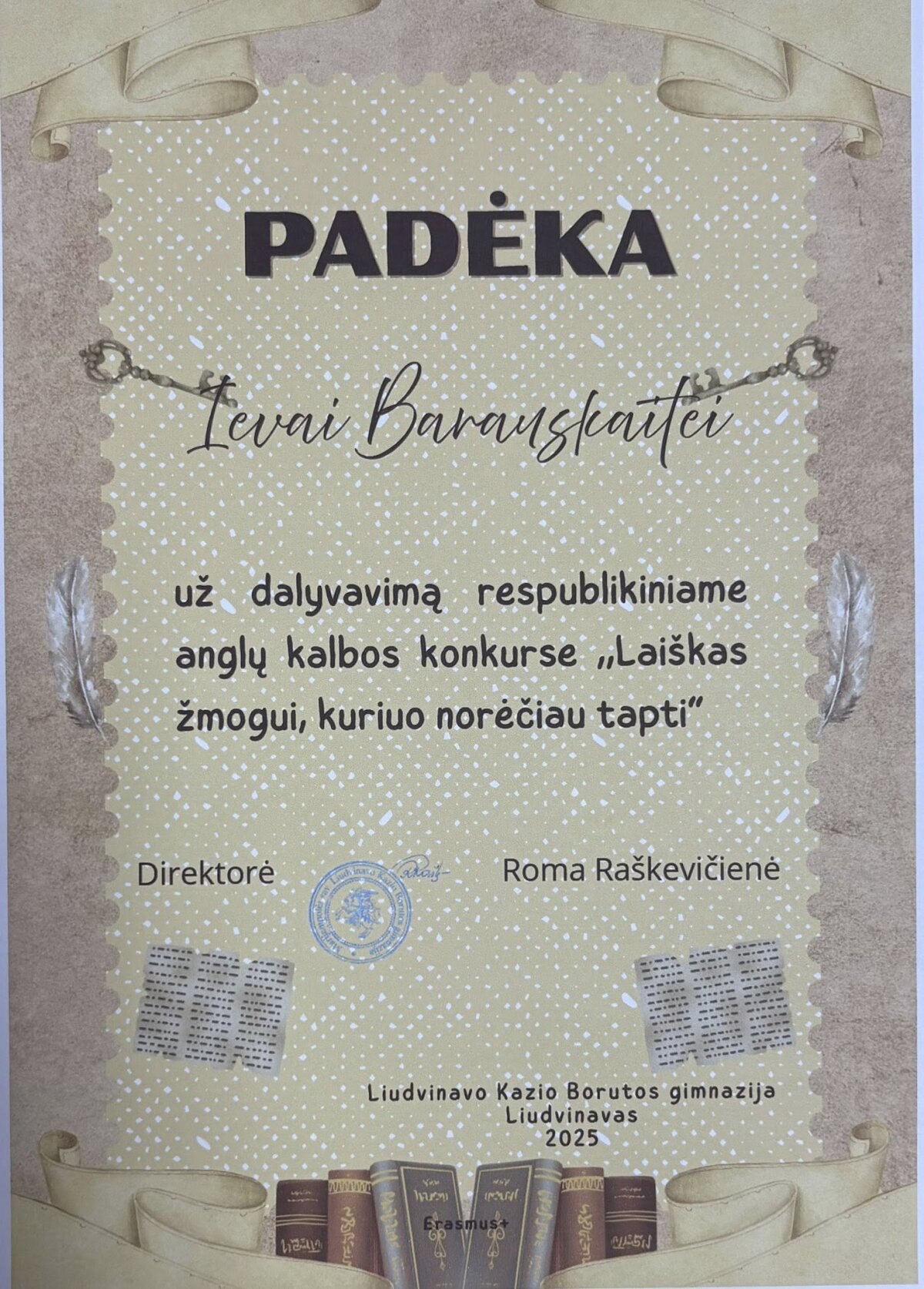 Ačiū anglų kalbos mokytojoms Gražinai Avižienienei ir Editai Grubienei už mokinių paruošimą
