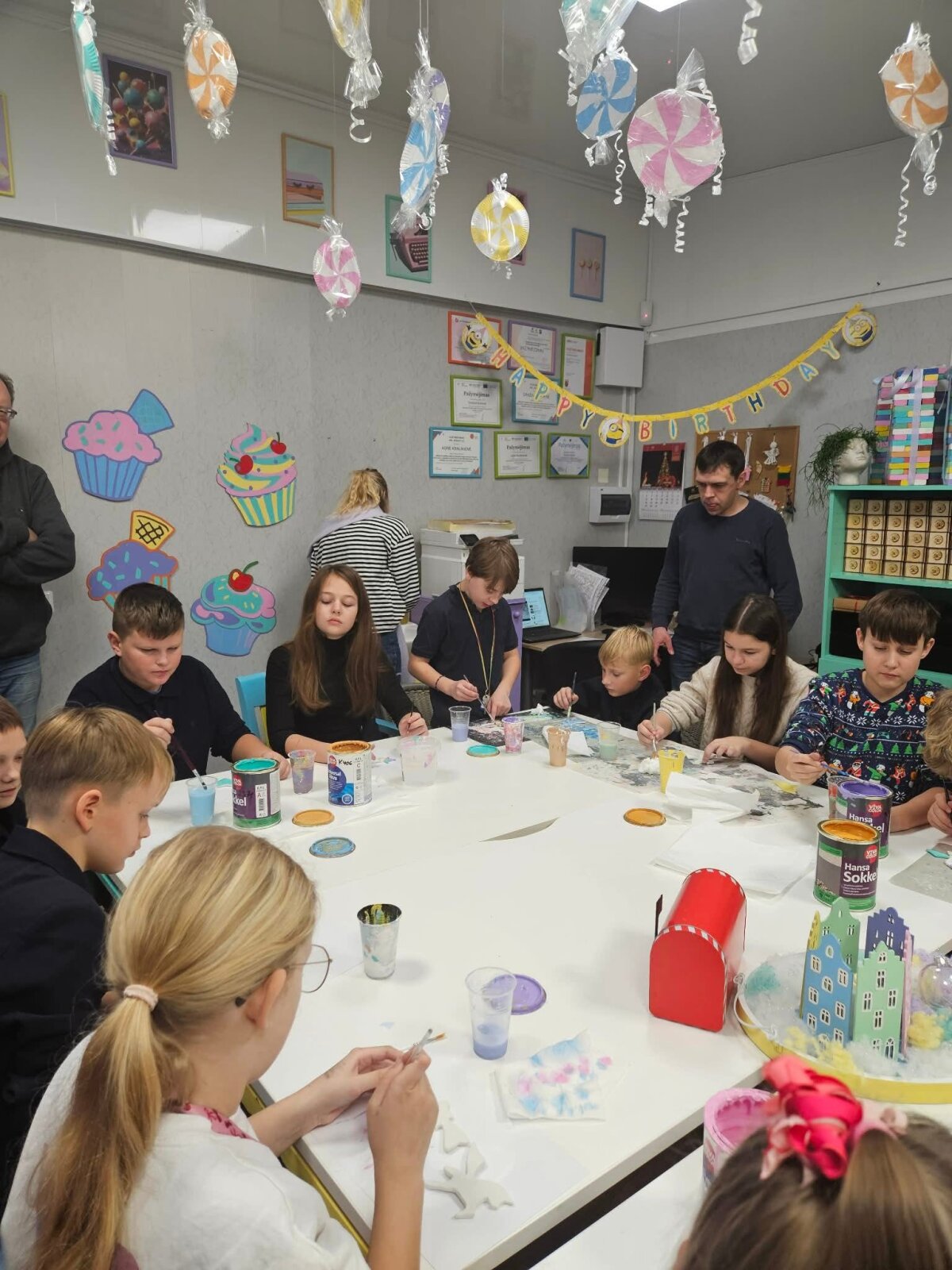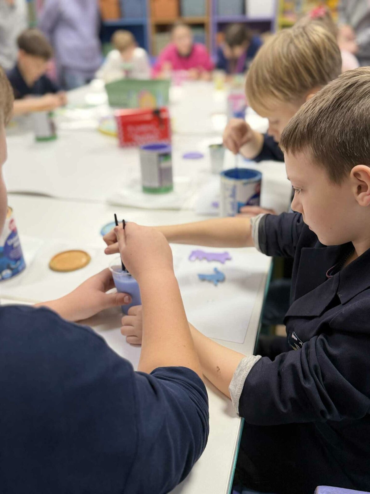 Gruodžio 10 dieną 5a klasės mokiniai lankėsi socialinėse dirbtuvėse ,,Pastelės namai". Ten juos pasitiko dirbtuvių meistrės su savo ugdytiniais. Ilgai nelaukę visi pasiraitojo rankoves ir kibo į darbus. Susitikimo laikas netruko prabėgti. Po geros valandos visi džiaugėsi nuspalvintais žaisliukais. Nuoširdžiai pasikalbėję ir palinkėję gerų ateinančių metų penktokai grįžo namo.