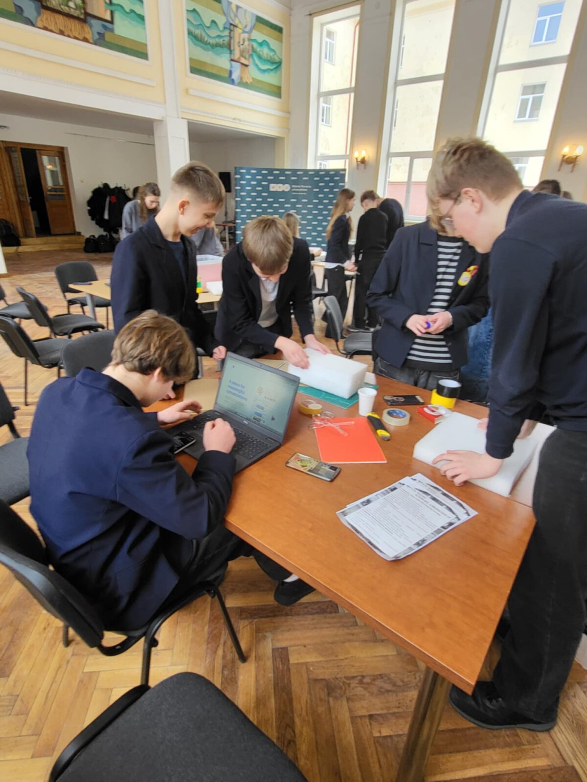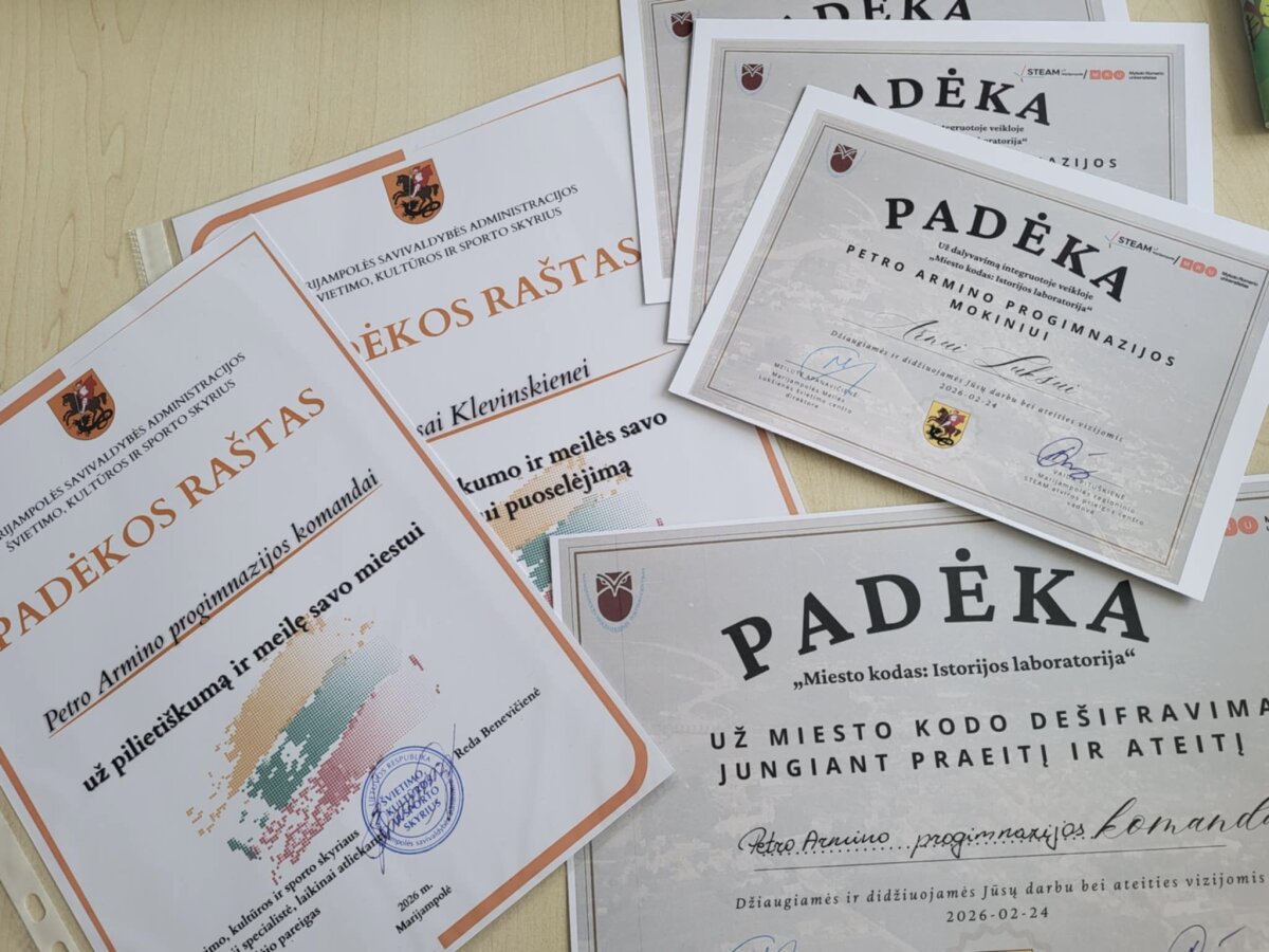 Renginyje „Miesto kodas: istorijos laboratorija“ aktyviai dalyvavo 7a ir 8 klasės mokinių komanda. Mokiniai kūrybiškai ir šiuolaikiškai pažvelgė į miesto istoriją – naudodami dirbtinio intelekto instrumentus jie kūrė vizualizacijas, vaizduojančias, kaip Marijampolė galėjo atrodyti, jei jos raidos nebūtų nutraukę karo įvykiai. Taip pat mokiniai pagamino seniausio mūrinio miesto pastato maketą, kruopščiai atkurdami architektūrines detales ir perteikdami to laikotarpio dvasią.