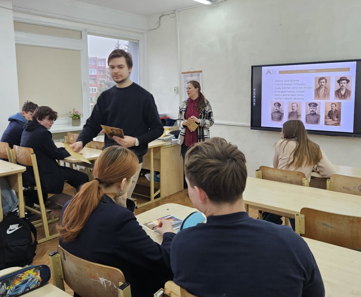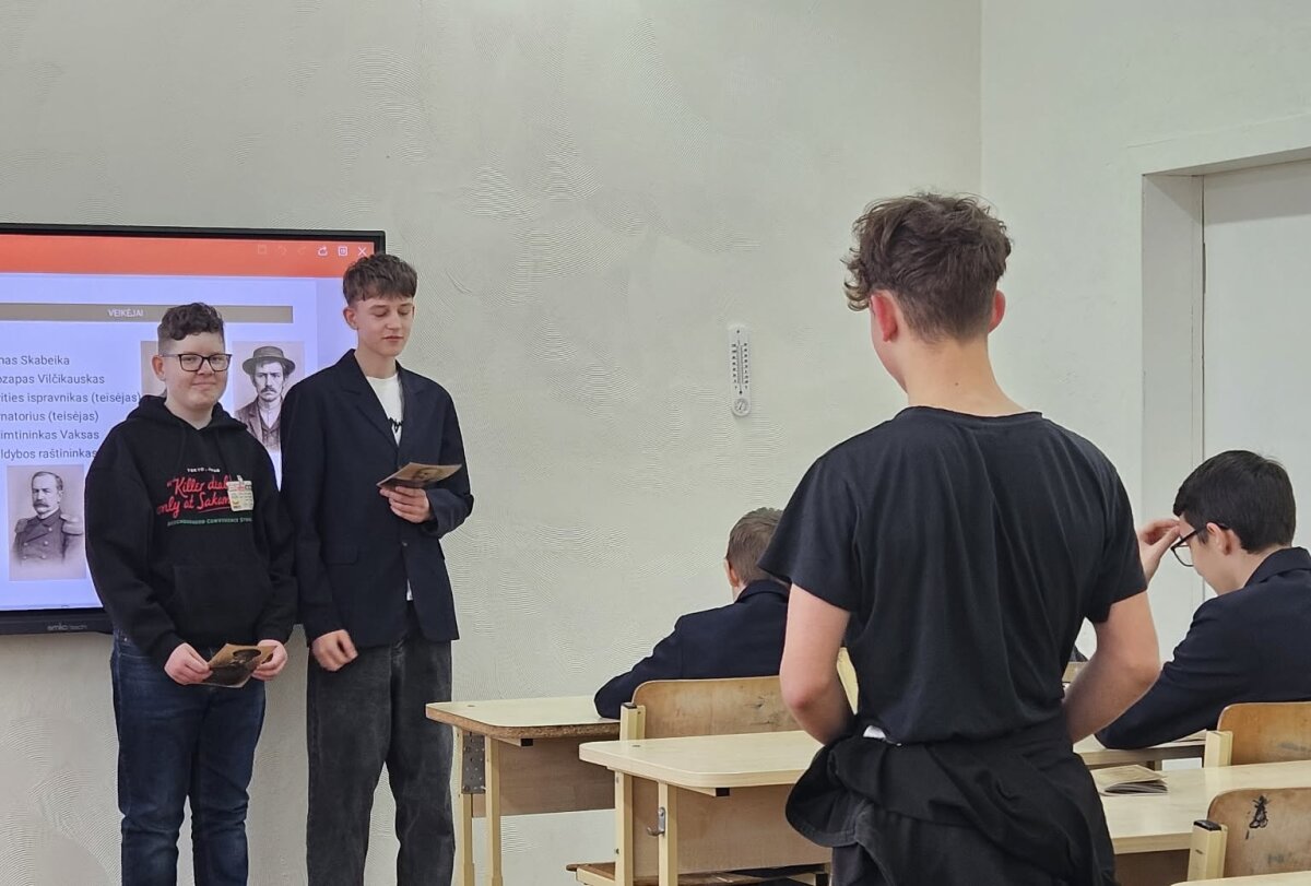 Balandžio 17 d. sulaukėme svečių iš Kauno regioninio valstybės archyvo. Edukacijos metu 5, 8 ir 7b klasės mokiniai daug naujo sužinojo apie knygnešių veiklą spaudos draudimo metais. Susipažinę su pateiktais dokumentais mokiniai atkūrė ir inscenizavo bylą, nugulusią Lietuvos archyvuose.