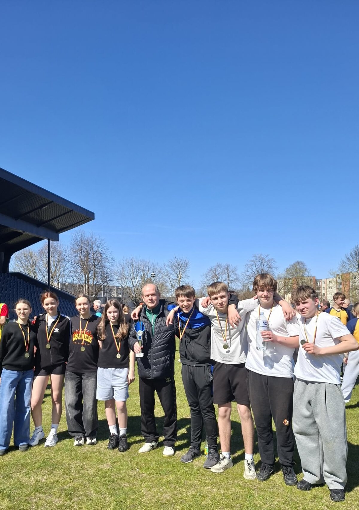 Sveikiname komandą Mažųjų mokyklų atletikos kroso estafečių varžybose užėmus I vietą.
